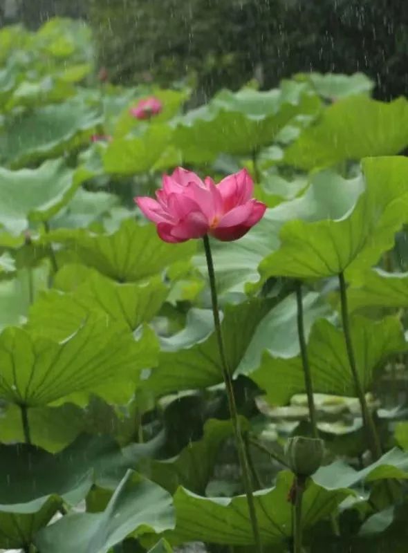 莲,莲科莲属多年生水生植物,通称荷花,此外还有芙蓉(“出水芙蓉”即指莲)、芙蕖、菡萏等别称。可见莲即是荷,荷就是莲。所以诗人杨万里在描述莲时为了避免用字重复,写到“接天莲叶无穷碧,映日荷花别样红”。