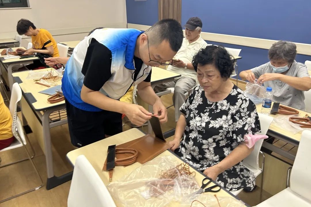 随后进行本次读书会第二个环节——编织包DIY活动。居民们在手语翻译的帮助下,一针一线,细心编织,各种漂亮的编织包出现在大家手中,寓意亲手做一份祝福和关怀送给在乎的人。