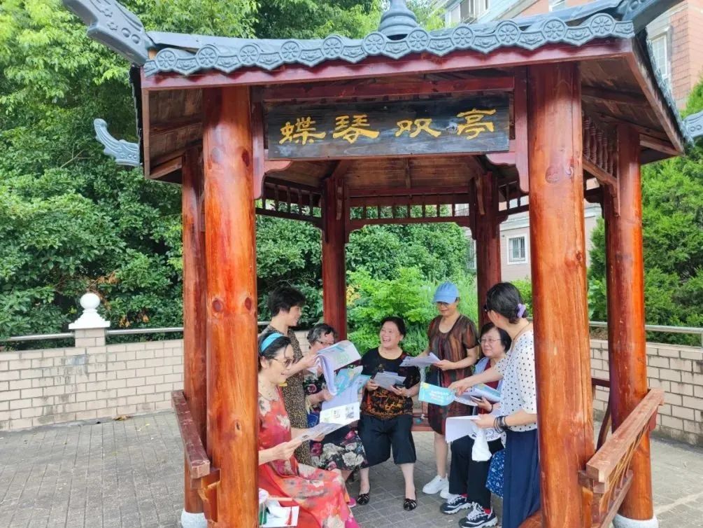 “蝶琴双亭”外观端庄典雅。前不久,在亭子内组织了一场名为“双蝶廊亭聊家常,谈笑风生听民心”的活动,党总支和小区居民以及来自物业、业委会、周边商铺代表齐聚凉亭,大家一边喝茶一边讨论社区“大事小情”,一起为小区更美好的明天出谋划策。