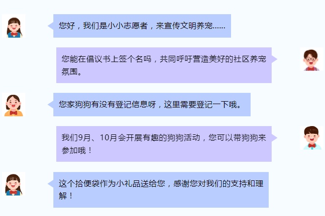“社区工作好辛苦呀,每天要和这么多不一样的叔叔阿姨哥哥姐姐去打交道!”“我邻居家也养狗,明天我去他们家做客,我要继续宣传!”