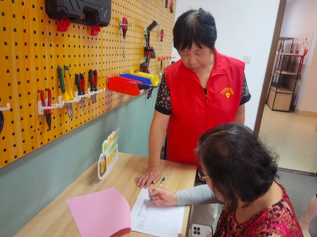 自从“共享工具屋”开张后,党员楼组长窦阿姨发动社区志愿者轮流负责工具屋值守、协助居民借用工具登记等工作。“工具屋的品种很齐全,只要居民们有借用的需求,基本都能及时满足。”窦阿姨说道。