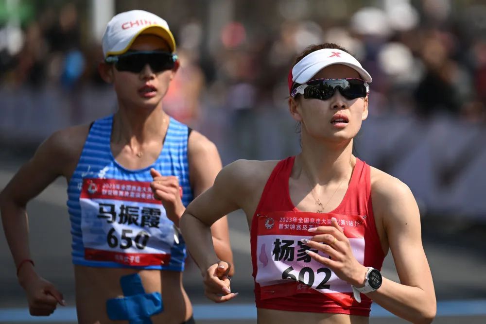 3月5日,在安徽省黄山市举行的2023年全国竞走大奖赛暨世锦赛及亚运会选拔赛女子成年组20公里竞走比赛中,杨家玉(右)获得冠军,马振霞获得亚军