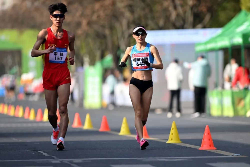 3月4日,切阳什姐(右)在2023年全国竞走大奖赛暨世锦赛及亚运会选拔赛女子35公里竞走比赛中