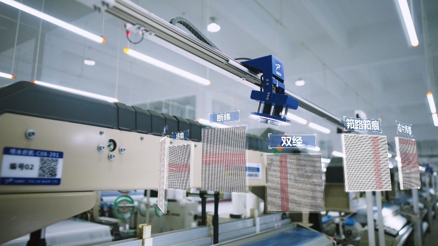 面向织布环节,推出“边织边检”智能系统,以智能巡检替代人工巡检,实现坯布在线疵点检测及预警,有效帮助纺织工厂实现“机器换人”的转变。当前“边织边检”系统识别准确率90%以上,提高挡车工50%工作效率。