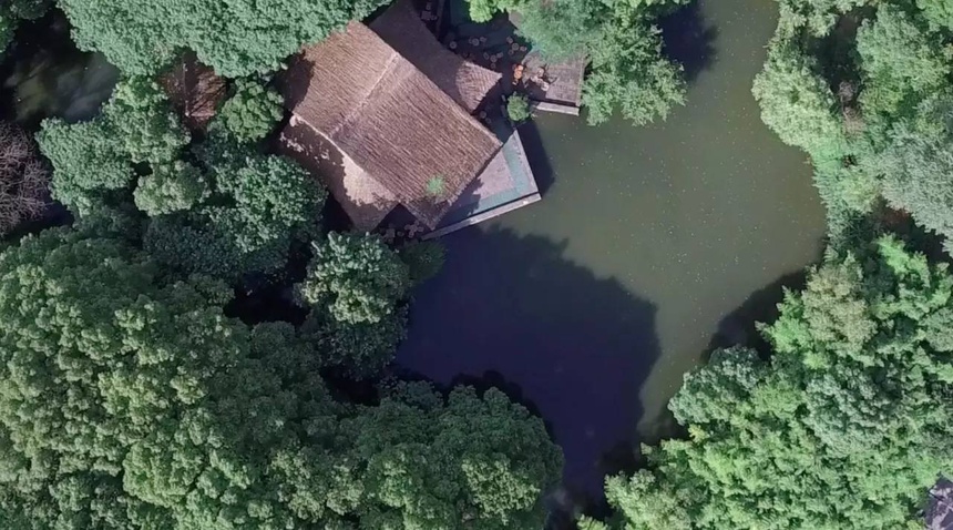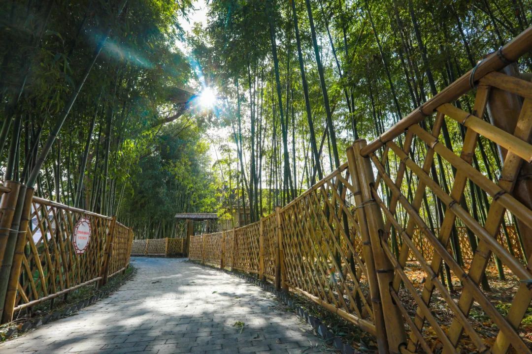 古色古香的“丝竹镇”依傍“镜竹塘”,小溪、竹丛与建筑的完美组合,绘就了一幅清幽的绝美画面。