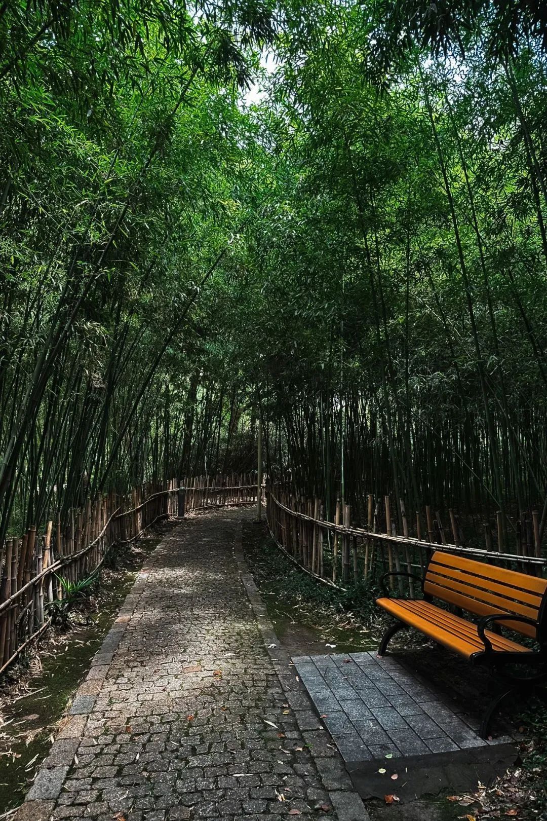 竹荫下微风带来阵阵凉意,在青石小道闲情漫步。闭上眼,静谧清爽润沁,睁开眼,满眼青翠入帘。