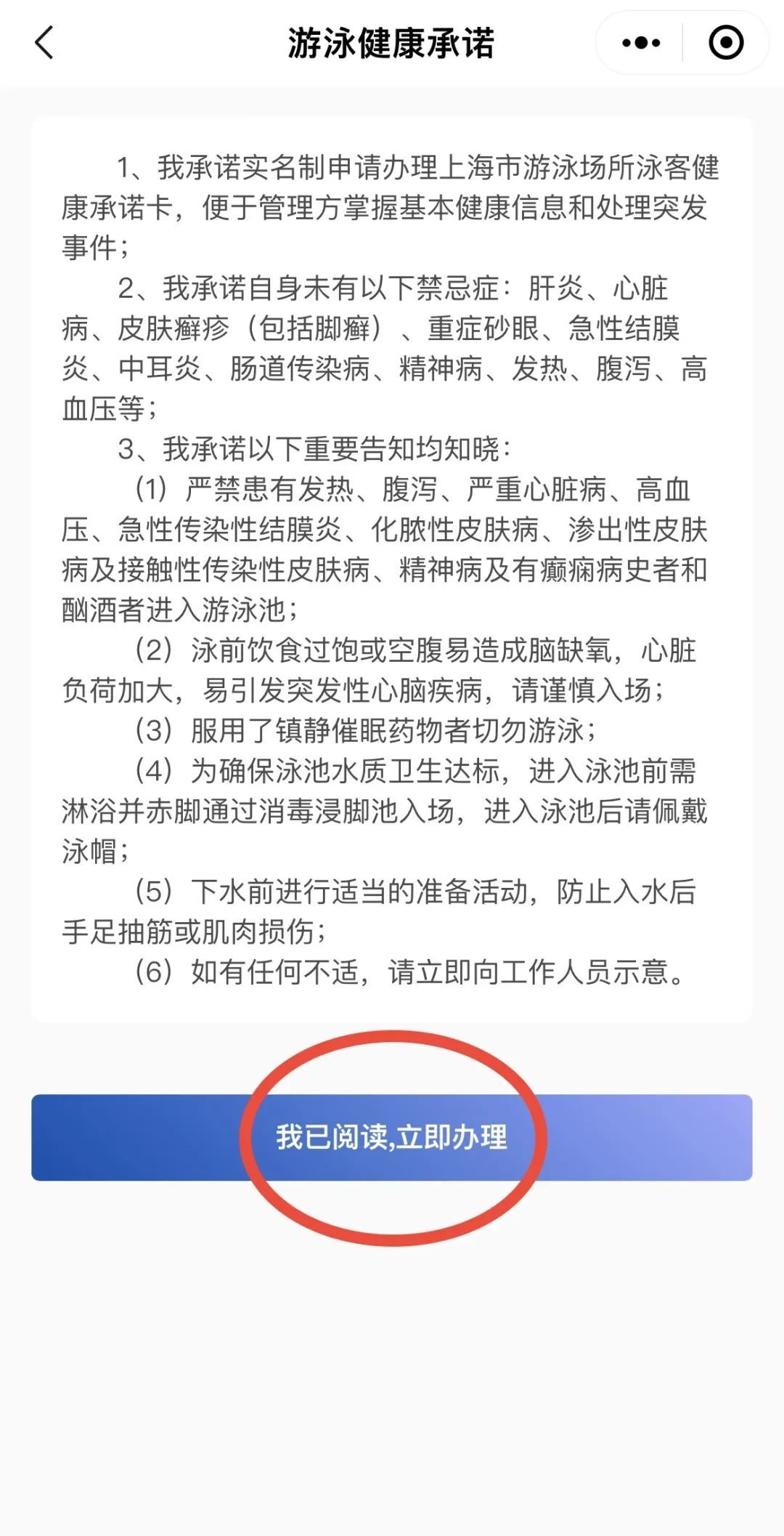 温馨提示:对于不便在线办理泳客健康承诺的儿童和老年人,也可在全市游泳场所线下办理纸质健康承诺卡。