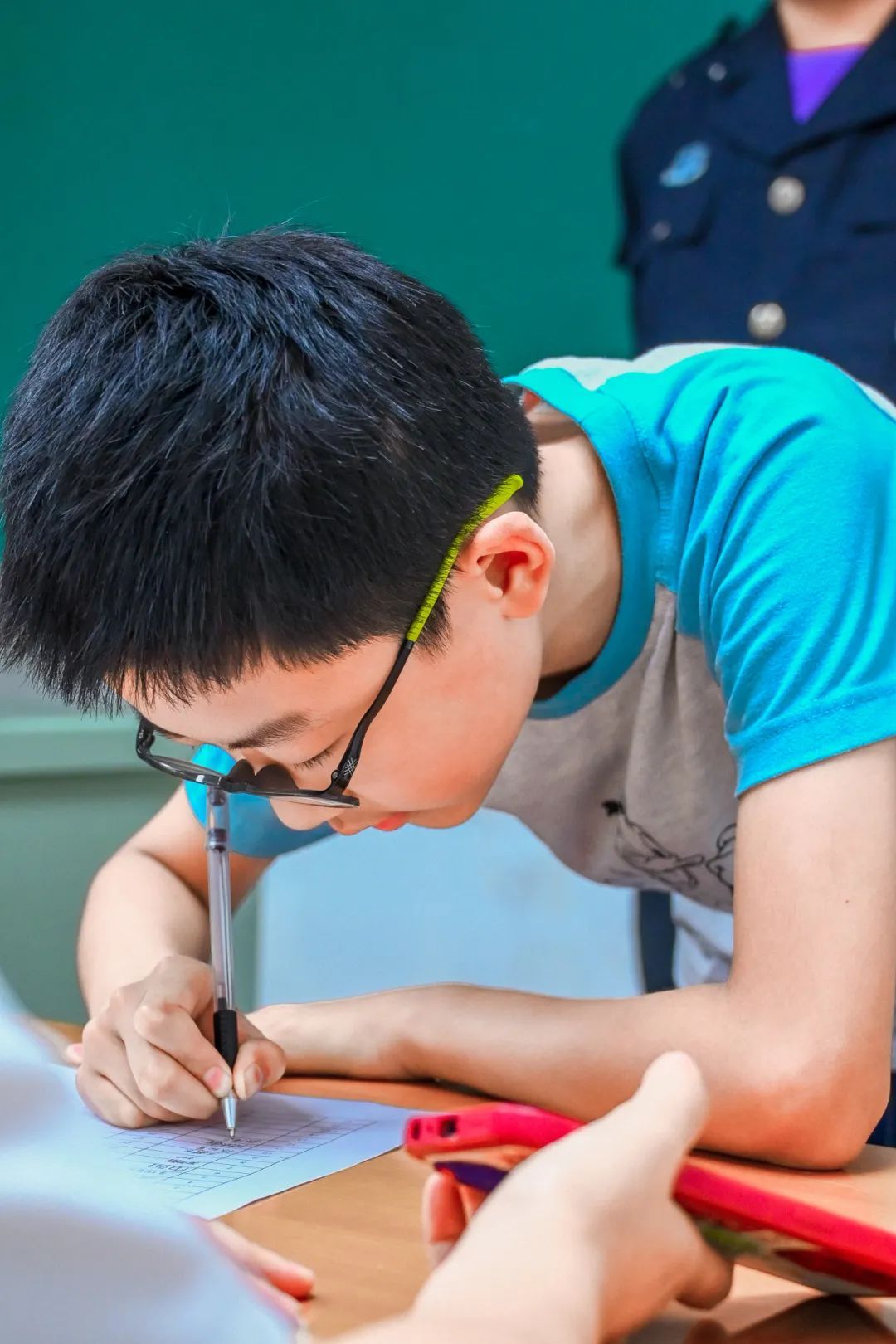 他将血液滴入进AB两组试剂,同学们观察其是否产生凝结反应,层层深入,抽丝剥茧,让同学们切身体会到科学实验的魅力。
