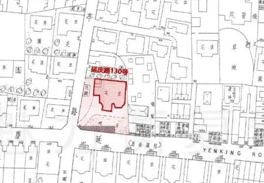 建筑本身 延庆路130号(《1948年上海行号图》) 延庆路130号是一座法国古典式花园住宅,1928年建成于环境优美的延庆路、华亭路拐角处。