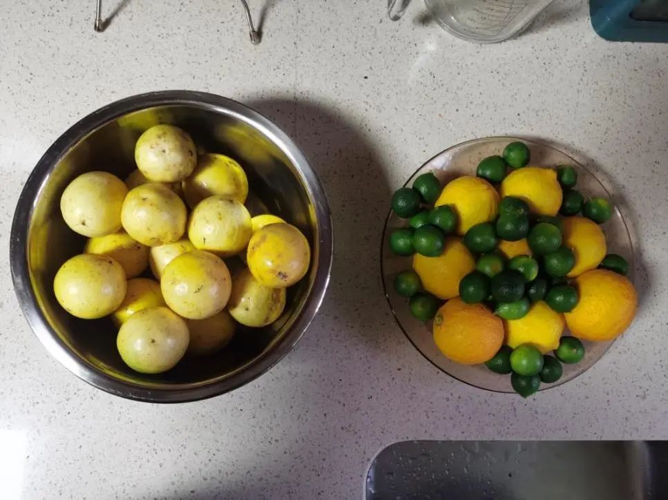 1.柠檬、百香果、小青柠用食用盐搓洗后再用清水冲洗干净,沥干水分。