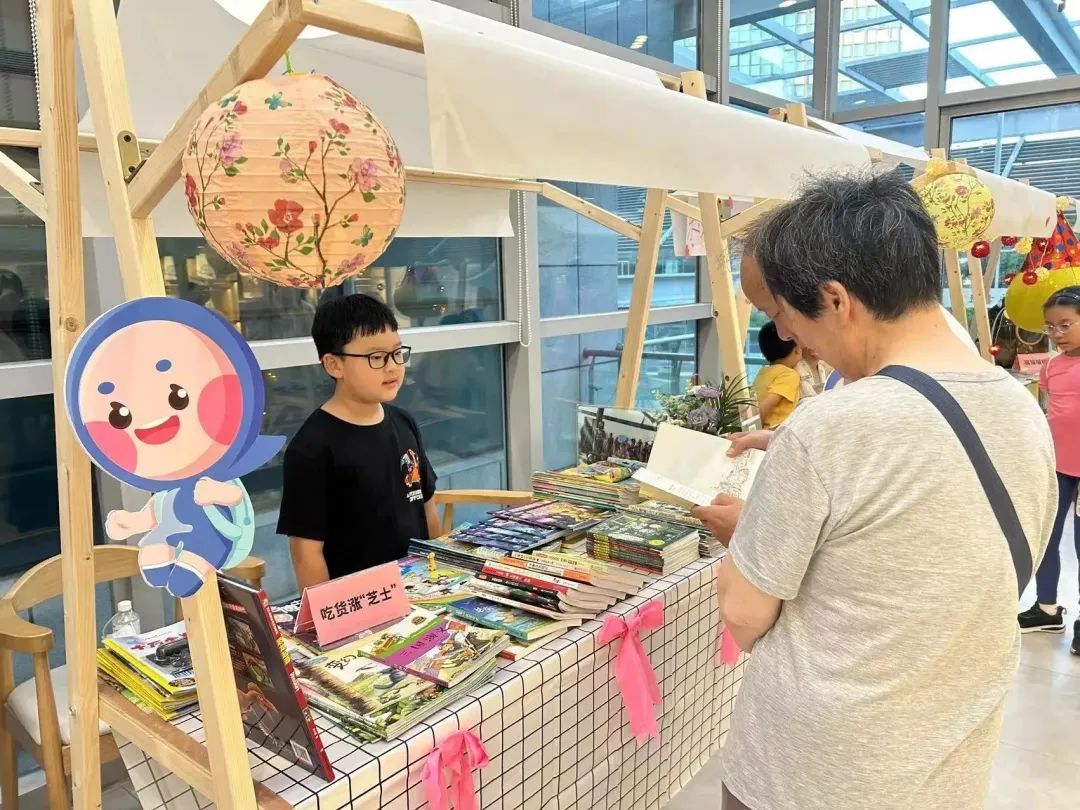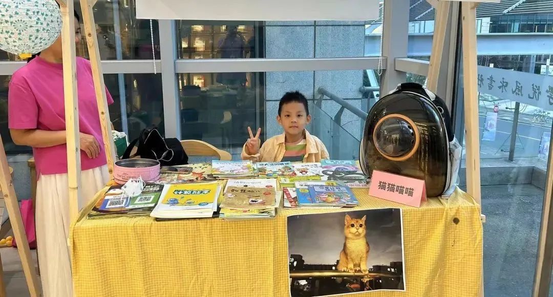 阳光少年、玥玥书摊、才宝小铺、欢乐小铺、泡泡书屋、静谧时光、悦享未来......一个个可爱的摊位名字后面,是一位位才华横溢的小摊主。许多小朋友带来了自己心爱的图书、玩偶、文创产品等,将自己的摊位打扮得各具特色。