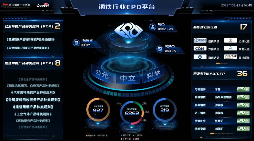 三是通过碳足迹披露,促进产业链绿色发展。产业互联网依托数据采集和算法模型,实现产业链全流程碳排放可知,为分析产业链碳排放热点提供数据支撑。由中国钢铁工业协会牵头、欧冶云商建设并运维的钢铁行业EPD平台,是国内首家发布环境产品声明的平台,目前也是工业领域唯一的平台,已累计发布36份EPD报告,产品种类覆盖钢铁、铁矿石,助力钢铁产业链绿色低碳发展。