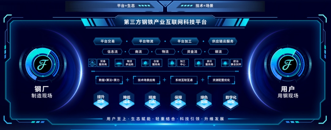 欧冶云商坚持以服务实体经济为导向,通过信息流、商流、物流、资金流、碳流“多流合一”赋能钢铁产业链,促进大中小企业融通发展。
