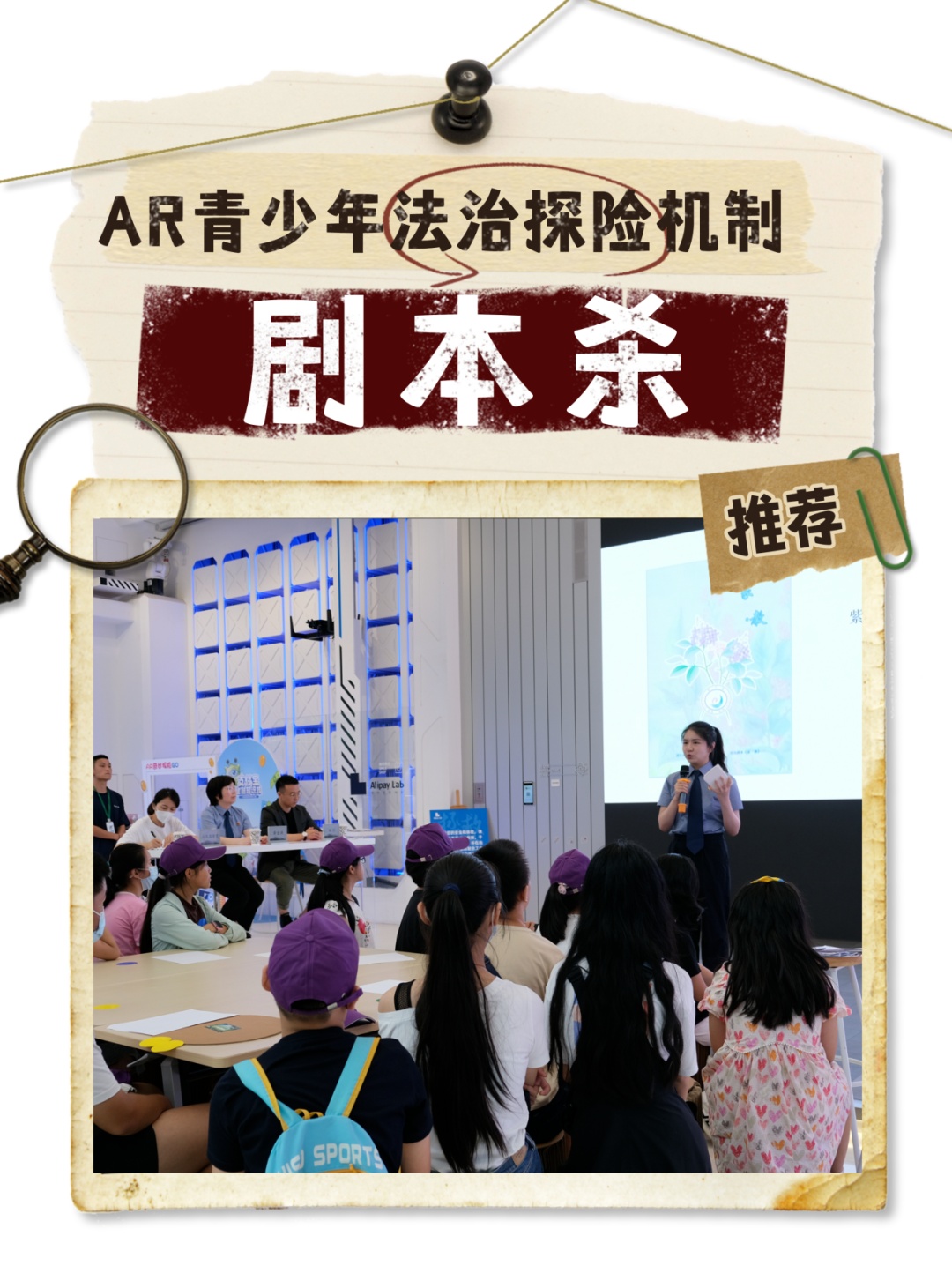 8月17日下午,浦东新区检察院邀请人民监督员、部分学生代表及家长至“紫丁香”法治课堂支付宝空间站点,以“护航青春——命运的齿轮由你转动”为主题举行“紫丁香”检察开放日活动,推出“AR青少年法治探险机制剧本杀”,而剧中角色的“命运齿轮”将由游戏玩家(即参与剧本杀的青少年)转动。