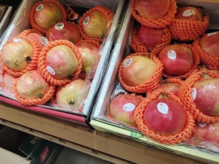 超市里悄然上架,菜场中难觅踪影的还有石榴,“刚上市的石榴基本都是软籽石榴,籽可以直接吃”,摊主表示,现在买石榴尝鲜的人还不多,“等再过一段时间大面积上市了,价格肯定会回落,需求量也会增加。”