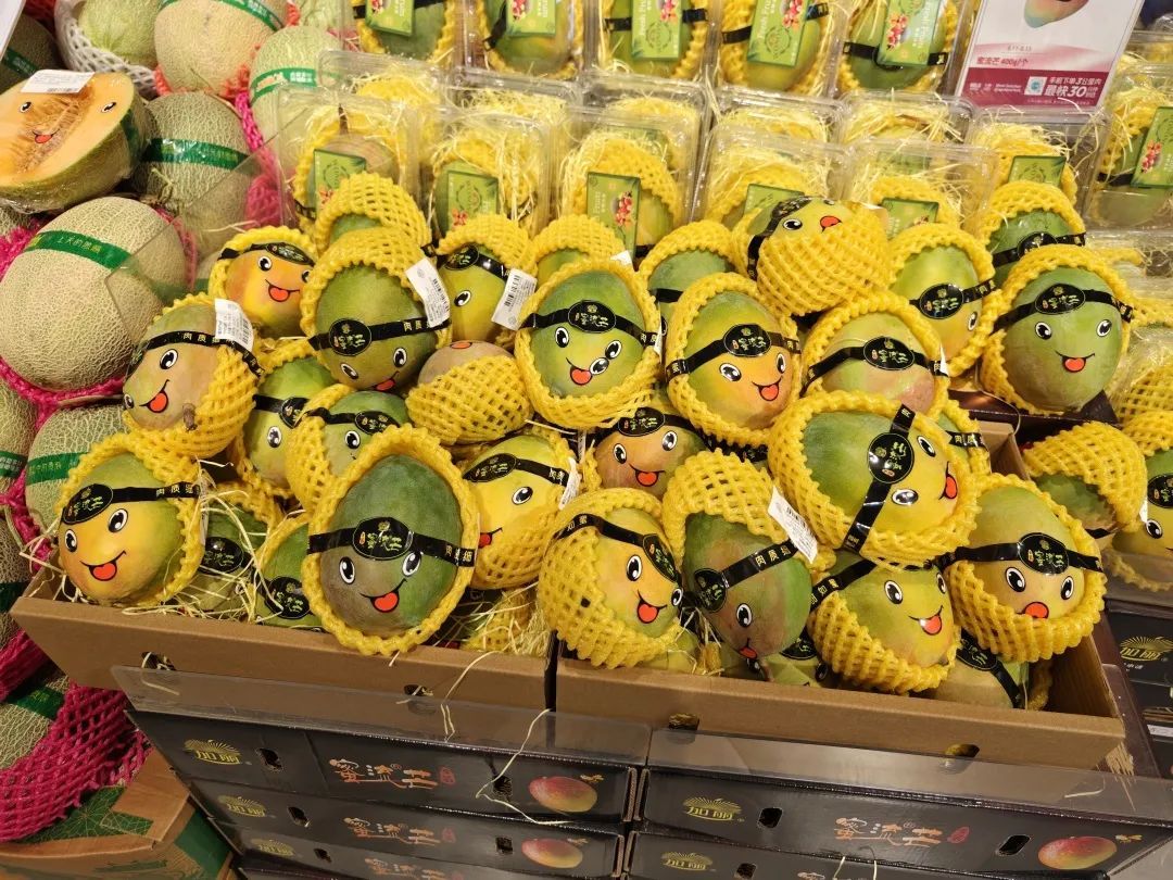 同样与夏天紧密相关的还有芒果。在七鲜超市(上海瑞虹太阳宫店),芒果上还贴着“当季限定“的标签,其中,产自海南的蜜流芒因其肉质细滑、汁多香甜的特点,深受年轻女士的青睐。市民陆小姐便是直接购买了五个装的一整箱,她直言“吃一次少一次,夏天过去又要再等一年了。”