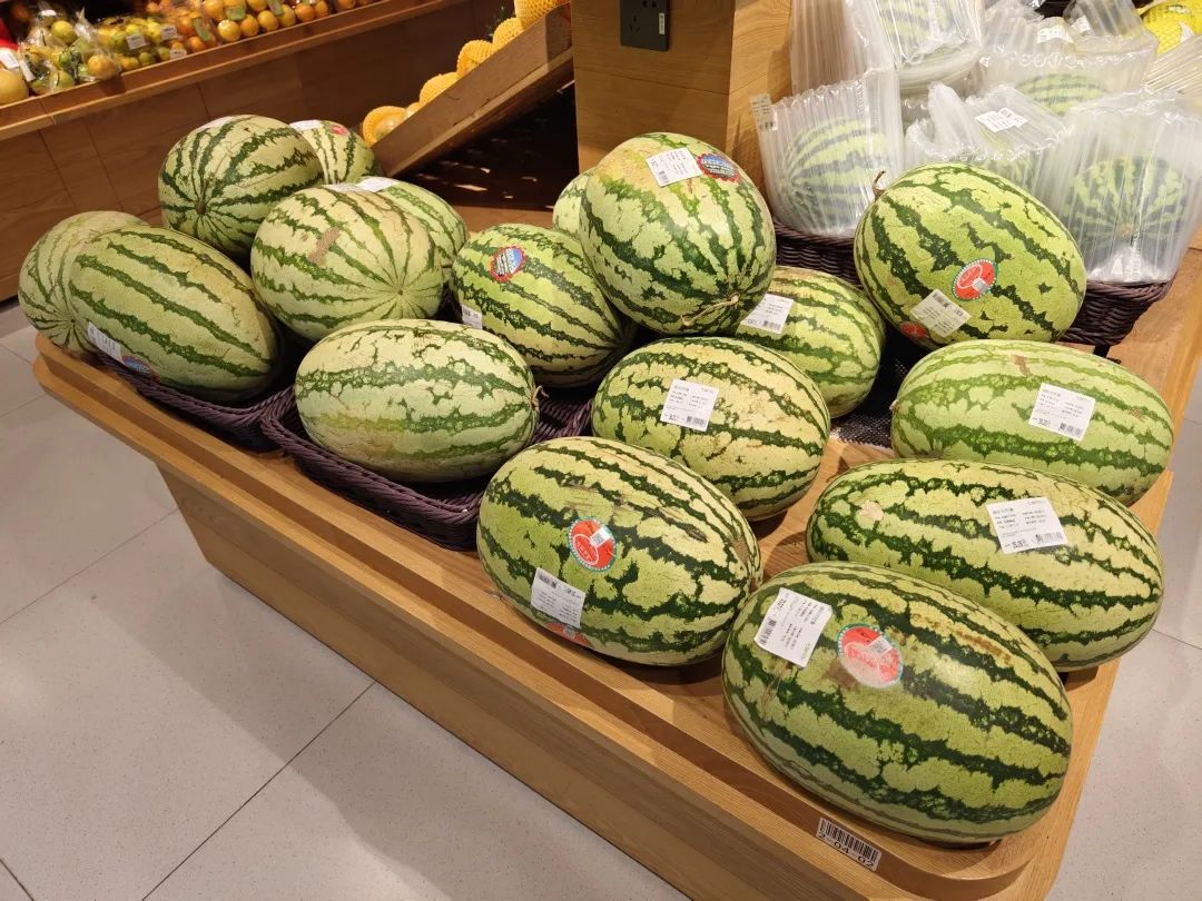 日前,记者在虹口的各大菜场和生鲜超市内看到,麒麟西瓜、压砂西瓜仍然被摆放在水果售卖区比较醒目的位置,价格则较以往有了较大幅度的下降,压砂西瓜普遍不到两块钱一斤,吸引了不少市民选购,想要抓住夏天的尾巴。