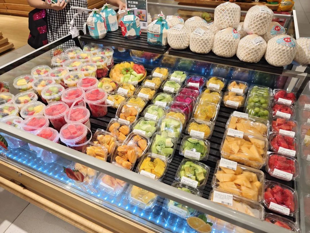 记者在店内看到,哈密瓜、甜瓜、火龙果、菠萝蜜、椰子等夏季时令水果,不仅有整果售卖,还有精致的盒装、拼盘可供选择,在告别前迎来了今年最后一波的消费高峰。