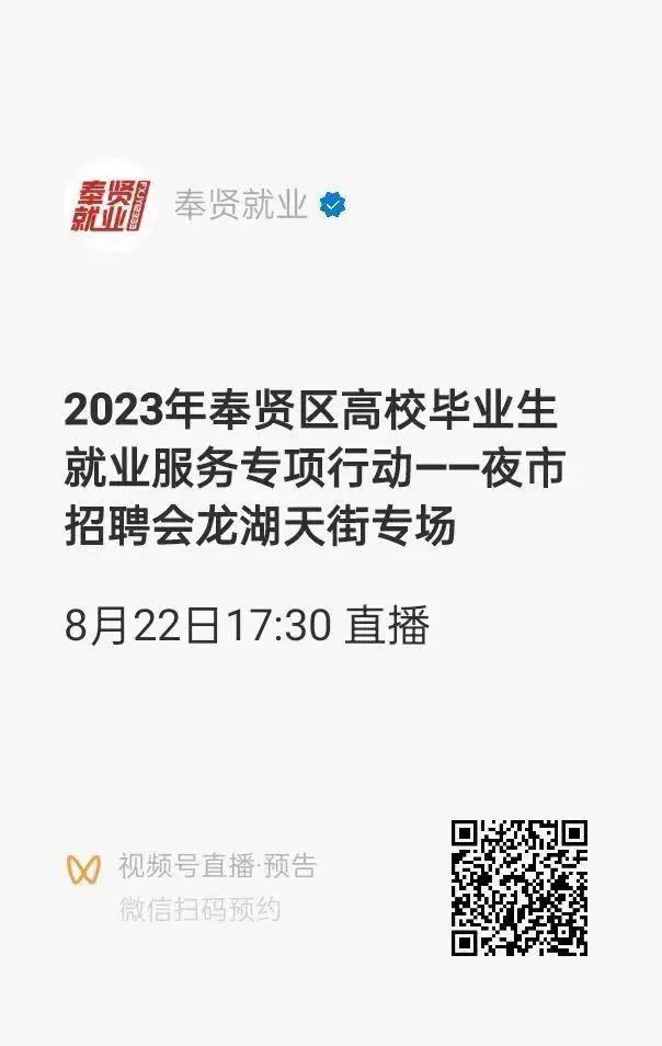 根据《上海市人力资源和社会保障局关于开展2023年高校毕业生等青年十个“一”就业服务攻坚行动的通知》沪人社就[2023]235号文件精神,以夜间经济发展带动就业为抓手,积极发挥大型商圈等商贸平台促进新兴产业发展的作用,结合本区实际,为做好奉贤区高校毕业生就业服务工作,奉贤区人力资源和社会保障局定于2023年8月22日在奉贤区南桥龙湖天街举行2023年奉贤区高校毕业生就业服务专项行动暨“百日千万招聘专项行动”招聘会。 活动详情
