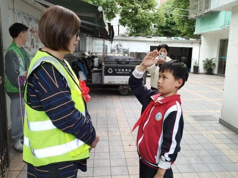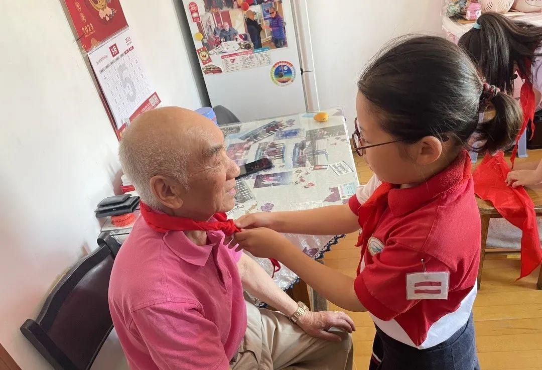 在关爱社区老人的过程中,师生们也不断传承红色基因。曹杨二中附校师生代表,看望雷锋生前所在连队虞仁昌老连长,大家围坐在老连长周围,分享参加志愿服务的感悟,老连长鼓励同学们树立全心全意为人民服务的信念,从身边的小事做起,在奉献中收获快乐,新时代好少年。“学习雷锋好榜样,忠于革命,忠于党……”金沙江路小学走进长风四村第一居委会,献唱一曲《映山红》,勾起爷爷奶奶的回忆,也激励在场党员不忘初心、牢记使命。曹杨新村第六小学开展“劳动人民爱劳动 劳动人民最光荣”主题活动,党员志愿者带领学生开展寻找“身边闪闪的红星”以及寻找心目中的光荣劳动者活动,少先队员们为门卫、邮递员、物业经理、快递小哥、超市收银员、小区清扫员、志愿者等献上大红花,寻访社区退伍军人、全国三八红旗手、老党员等群体,为他们献上红领巾和队歌。