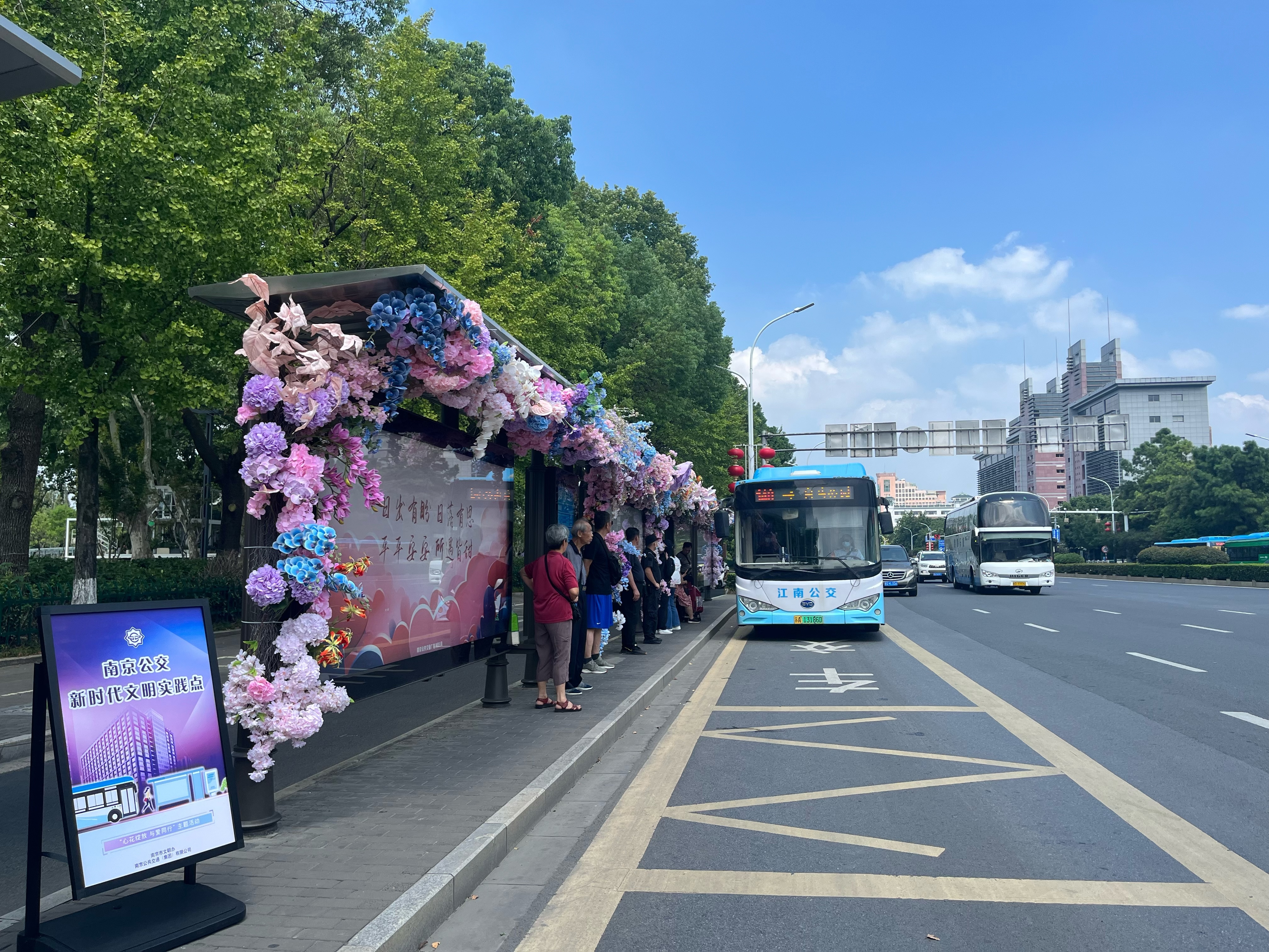 南京公共交通广告有限公司相关负责人表示,此次活动的装饰花卉将在活动结束后进行回收再利用,后期还将推出类似的温馨服务,为市民提供暖心的出行环境。