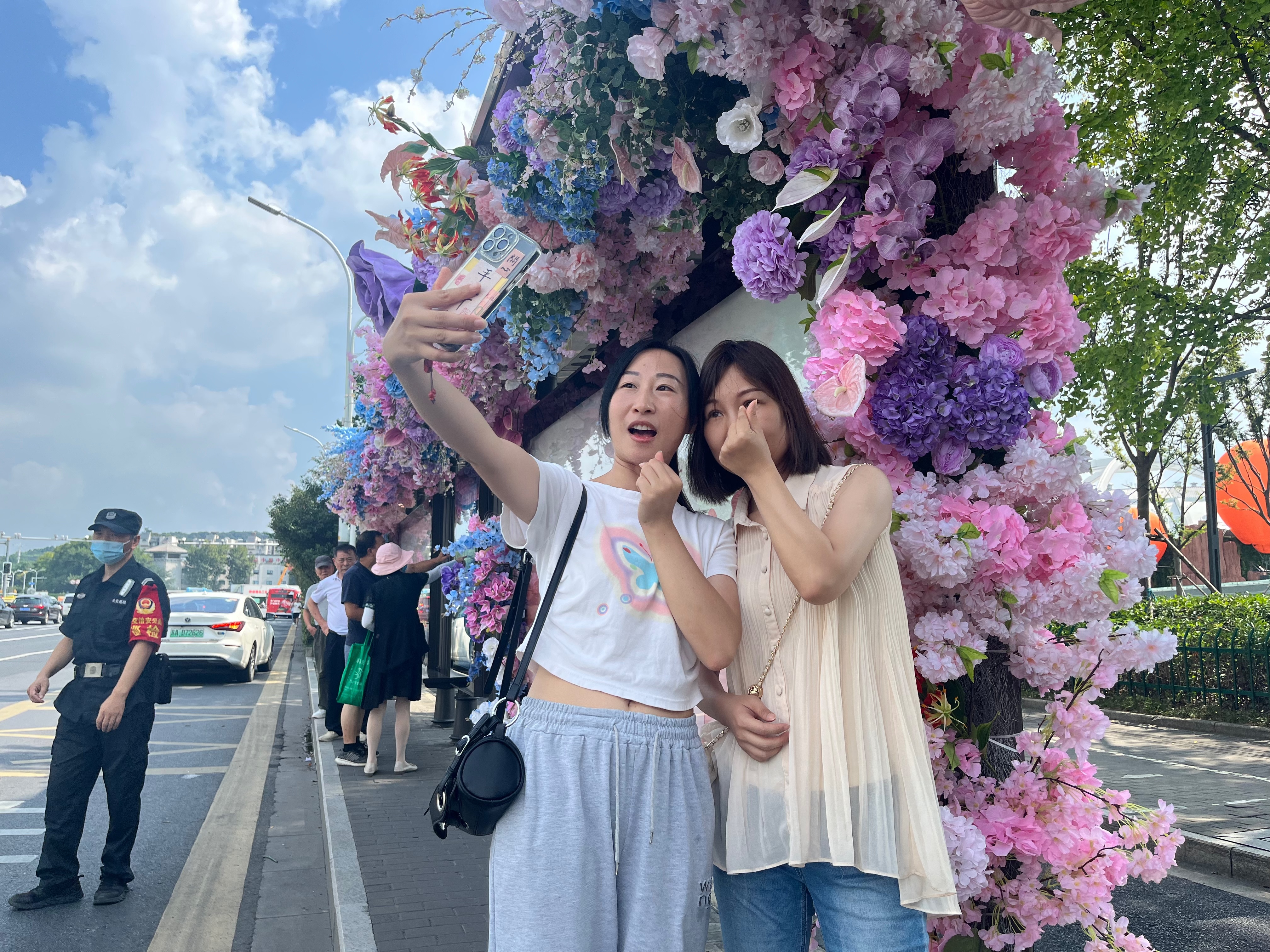 “很惊喜,今天是我来南京旅游的第一天,准备乘公交去紫金山,这个站台让我感到南京的浪漫和温柔。”来自山东的游客张同学说。