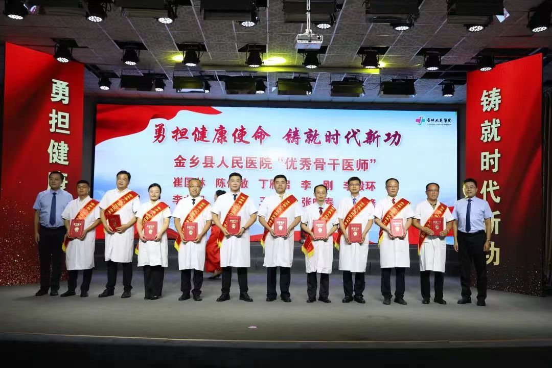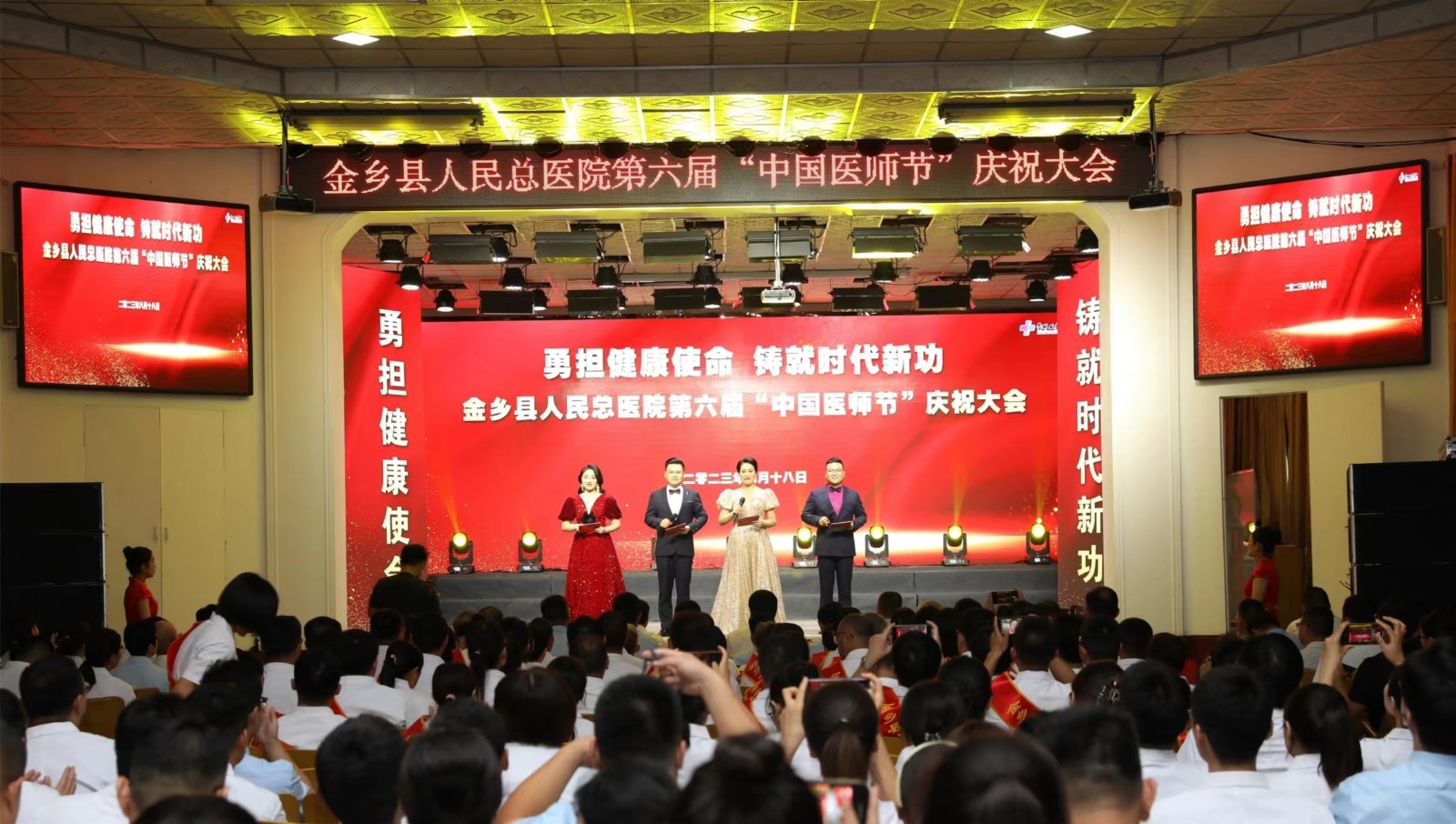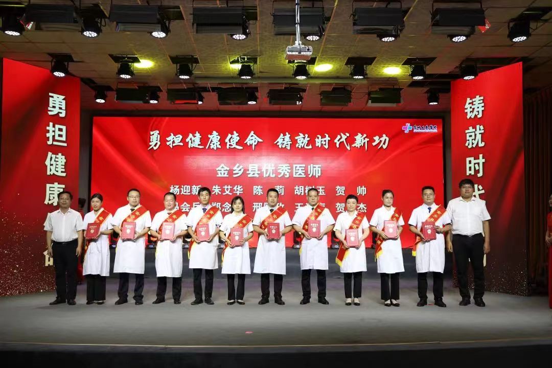 为庆祝第六届“中国医师节”,8月18日,金乡县在县人民医院总院召开“勇担健康使命 铸就时代新功——中国医师节庆祝大会”,大力弘扬医务工作者救死扶伤的崇高品质,充分展示医疗队伍良好的精神风貌和职业风范,激励全县医务工作者继续弘扬“敬佑生命、救死扶伤、甘于奉献、大爱无疆”的崇高职业精神。县政府、县卫健局有关负责人,医院两委班子成员与医院职工、医共体成员代表齐聚一堂,共同庆祝这个属于全体医师同仁的节日。