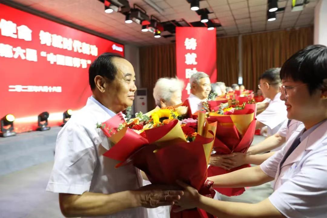 活动现场对“金乡县优秀医师”,金乡县人民医院“党员先锋医师”“优秀骨干医师”“优秀青年医师”等进行隆重表彰。青年医师向医师老前辈献上鲜花。