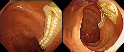 一般通过在粪便中找到虫卵或节片来确诊,本病例在肠镜中发现是非常少见的病例。