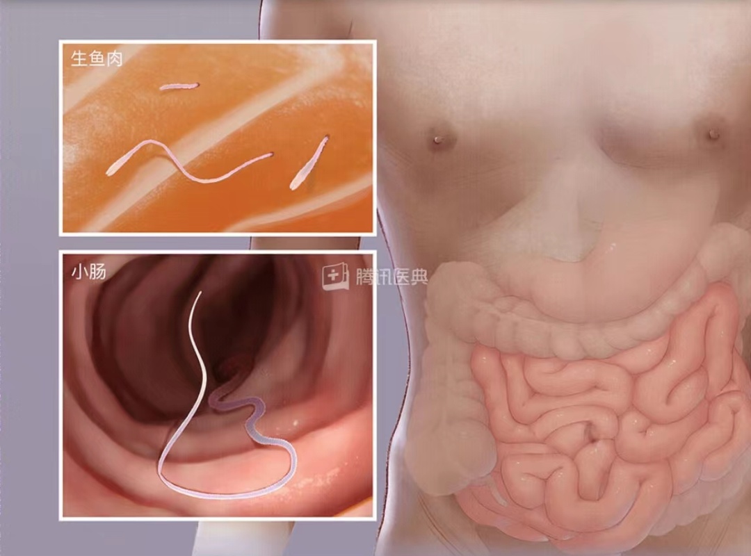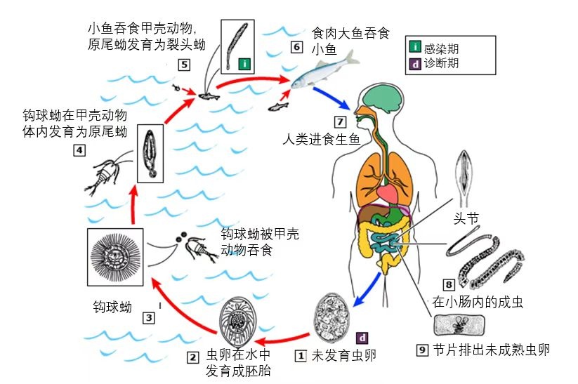 “生鱼生虾这类水产品最容易感染阔节裂头绦虫。”邢医生解释,“阔节裂头绦虫感染,就是一条大鱼吃小鱼的生物链过程。”