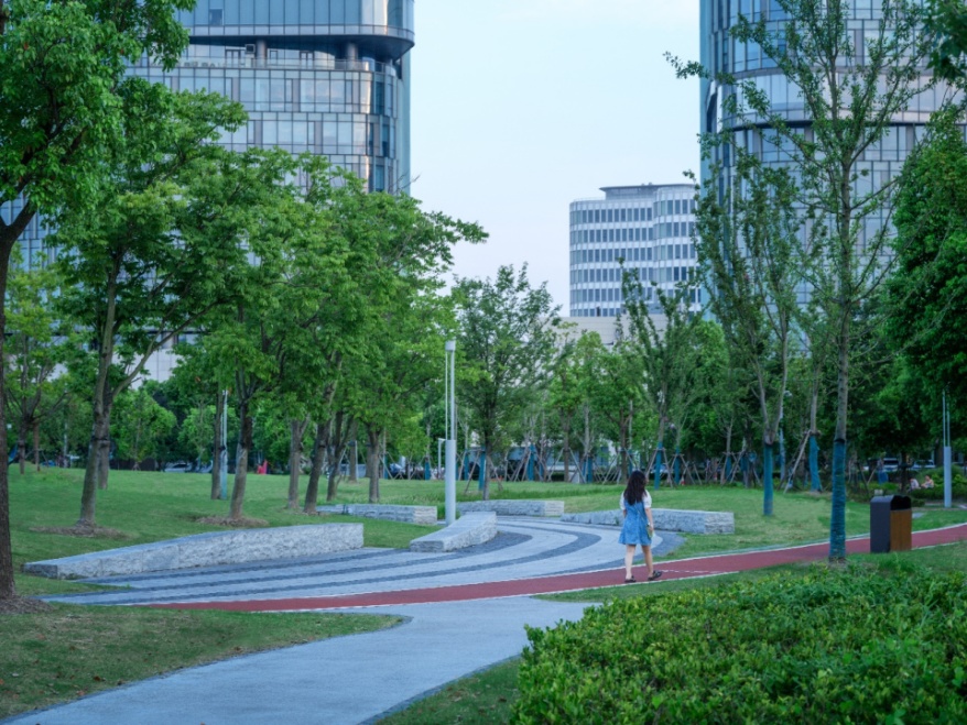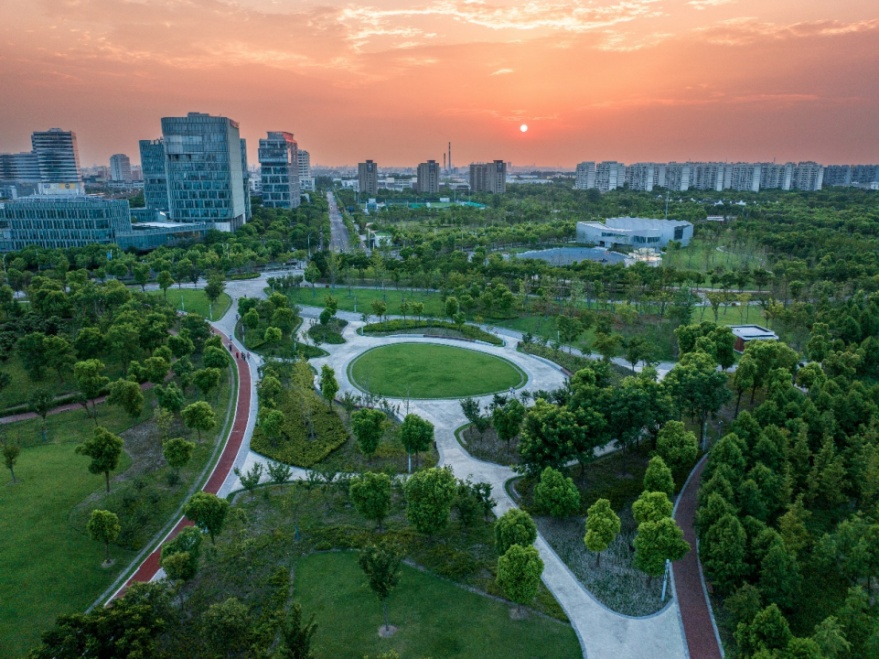 森兰北块绿地总面积占地18.40公顷,整体以“文化舞台”为主题, “趣味运动、企业花园、商务休闲”为主要功能,在繁杂的大都市中营造一个既能展示企业文化,又能给人们提供活动的栖息之地。