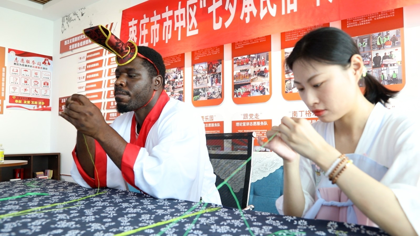 近日,枣庄市中区西王庄镇邀请外国友人到镇新时代文明实践所参加七夕“赛巧”活动,让外国友人近距离感受中国传统节日“乞巧节”的独特文化魅力。