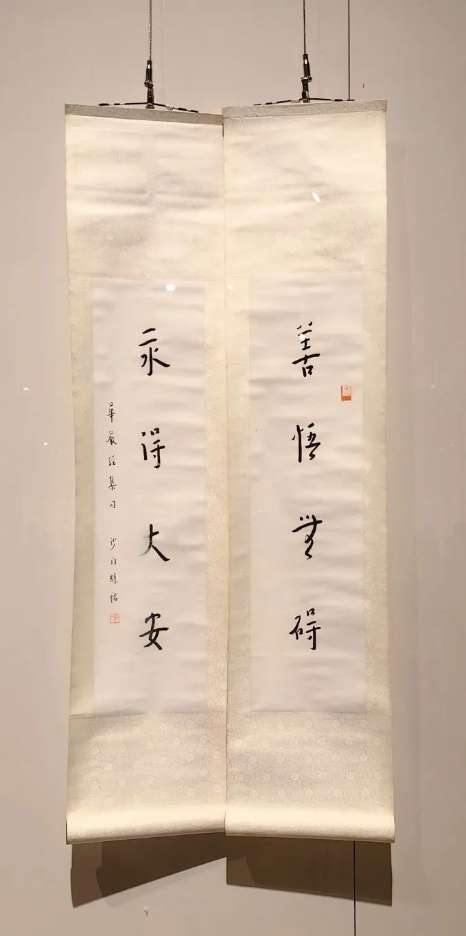 右:李叔同《八言对联》行书 67×18cm