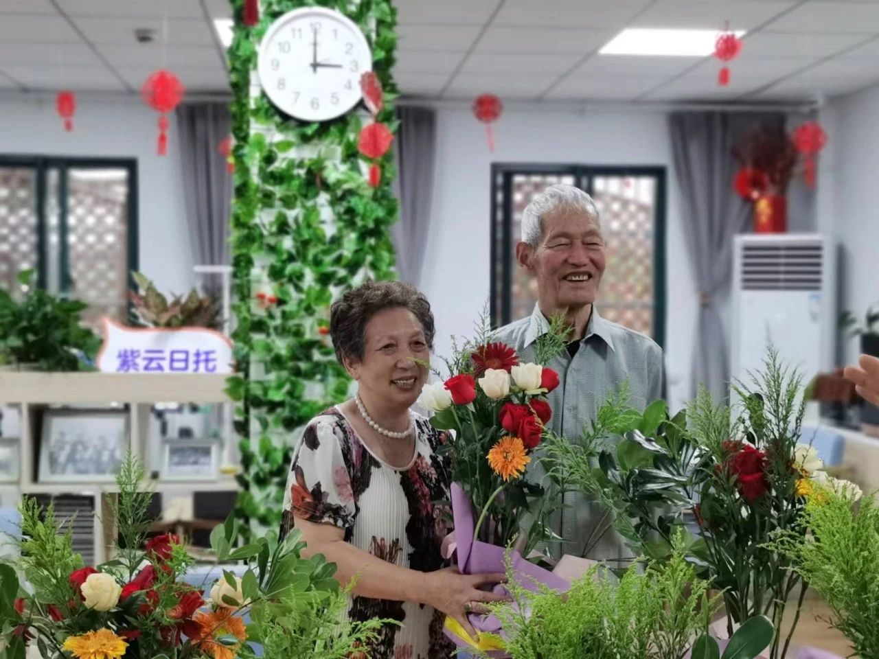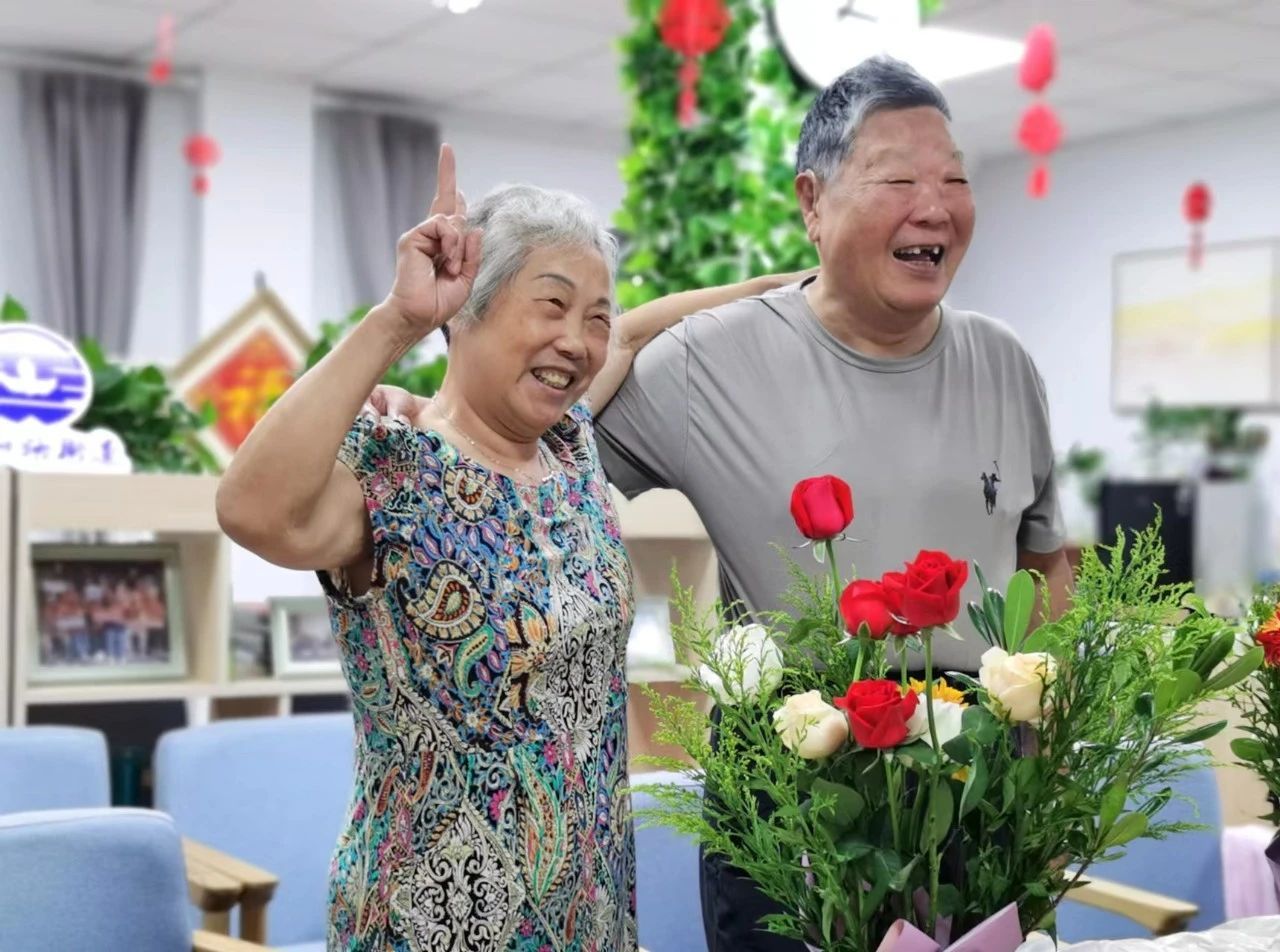 七夕节从来不只属于年轻人,也属于这些相互扶持走过几十年的老夫妻。活动的最后,社区老人们站在自己亲手制作的“花海”中,脸上洋溢着幸福的笑容,工作人员则用相机定格了这美好的瞬间。