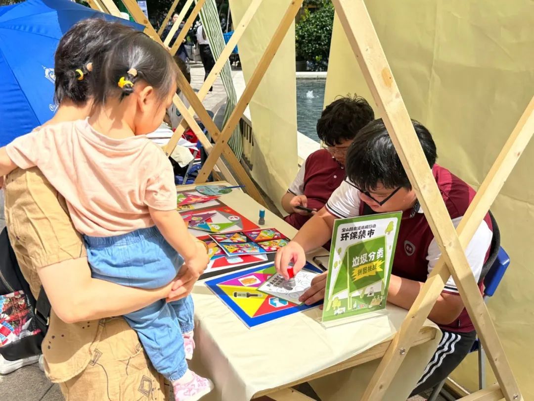 本次市集上还活跃着来自大境中学和澄衷中学的30余名志愿者,他们或是耐心讲解参与流程,或是热情投入在互动游戏中,为现场的居民们营造了温暖和谐的氛围,用昂扬向上的青春力量,播撒着绿色环保的希望种子。