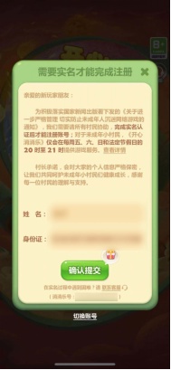 为此我们要来了小朋友的游戏账号并看了下他的防沉迷登记信息(也就是实名登记)。
