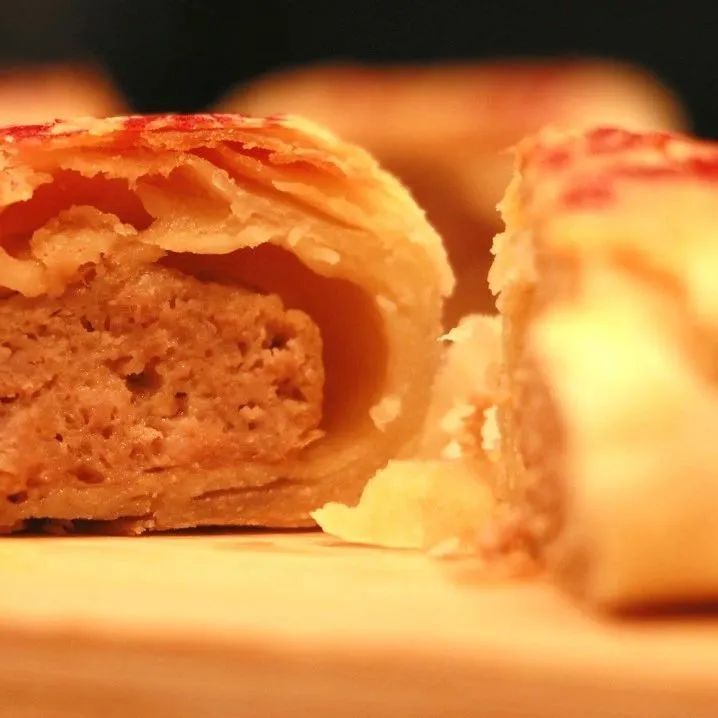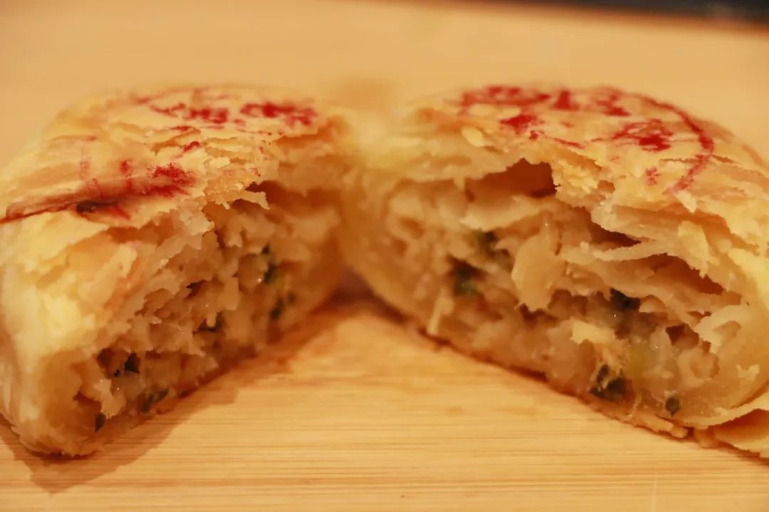 始于1851年的百年老字号老大房,一直以现烤鲜肉月饼而著称。据门店糕点师傅介绍,鲜肉月饼的酥皮的比例为6:4,每一只小小的鲜肉月饼都有足足64层酥皮,层层香酥、入口即化。而且,选用的是6-7个月猪龄的猪前腿肉入馅料,再另外添加少量的猪油膘进行调和。整个月饼被一口咬下去后,饱满的馅料会立刻爆汁。