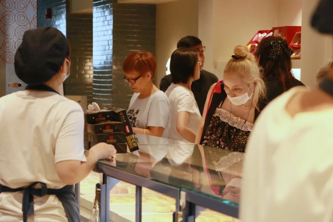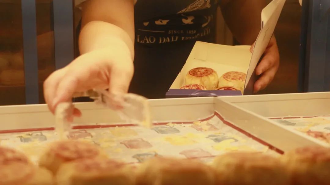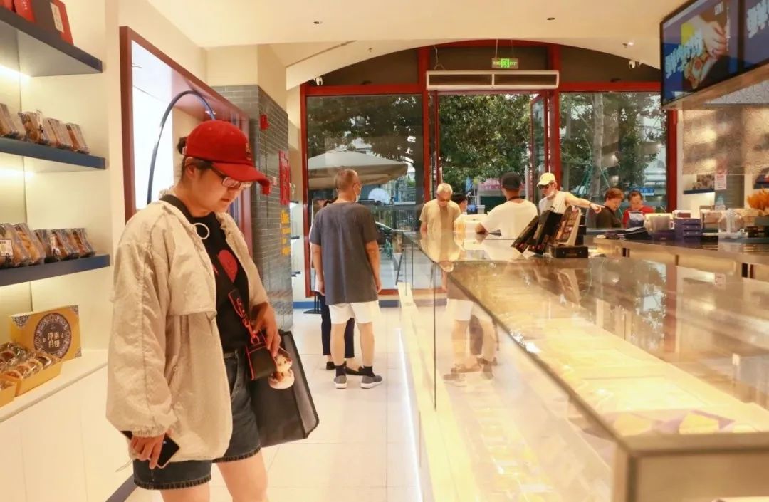 站在这家西区老大房的店门口,就能闻到现烤出炉月饼的香味,不免让路过的行人忍不住循着香气走进店内。