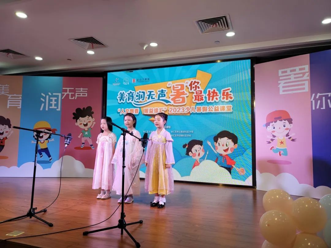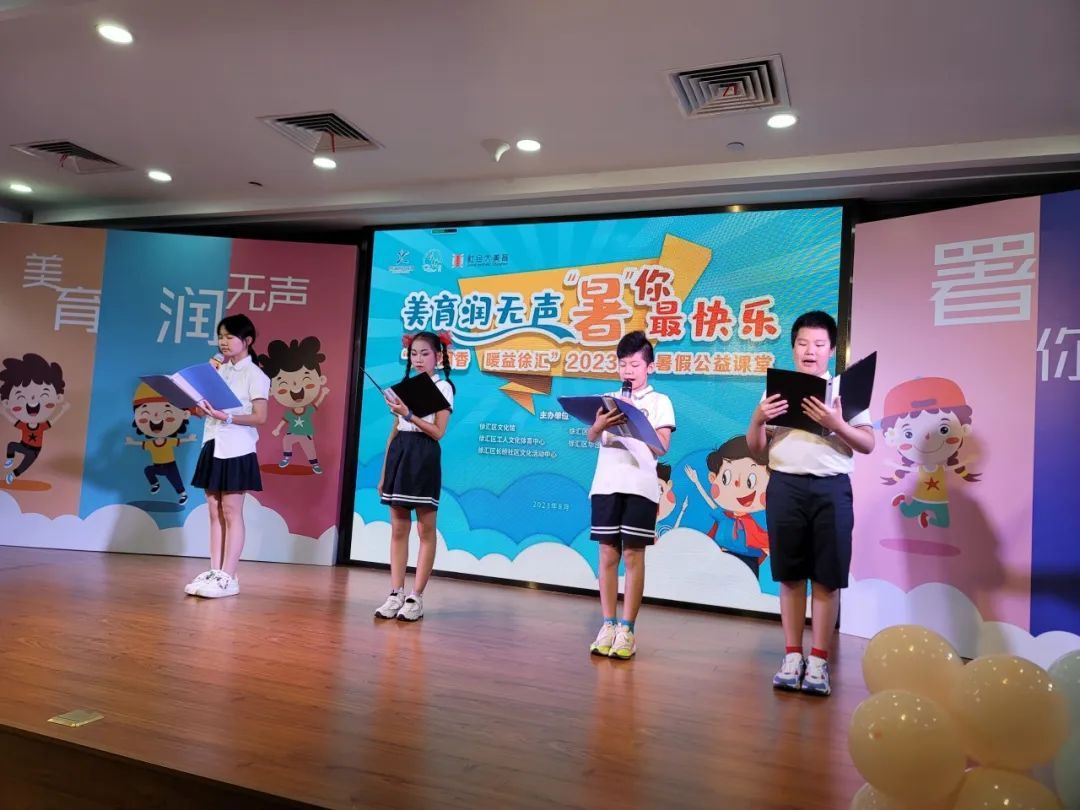 近日,由徐汇区文化馆、长桥社区文化活动中心等共同举办的美育润无声 “暑”你最快乐“人文飘香 暖益徐汇”2023少儿暑假公益课堂优秀学员展示、展演在文化中心评弹馆举办,近100多名优秀学员参加了此次展示、展演。