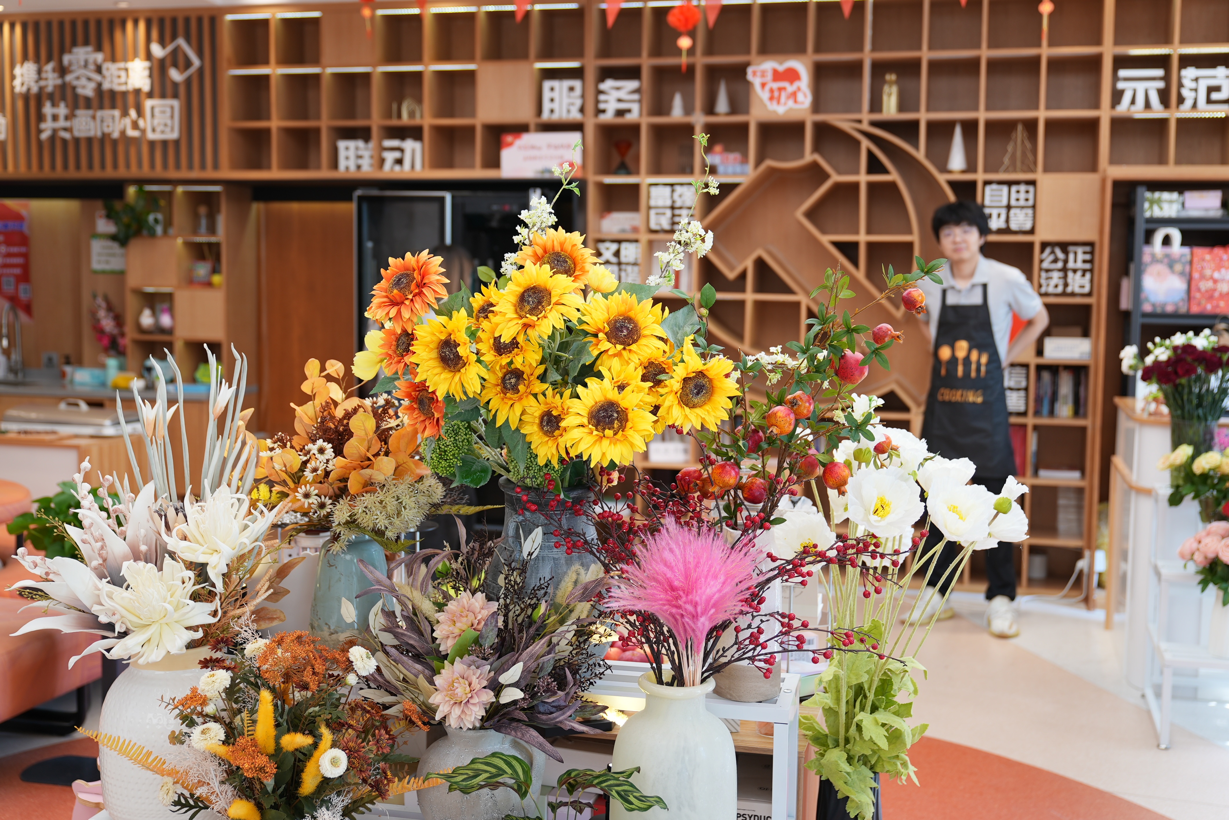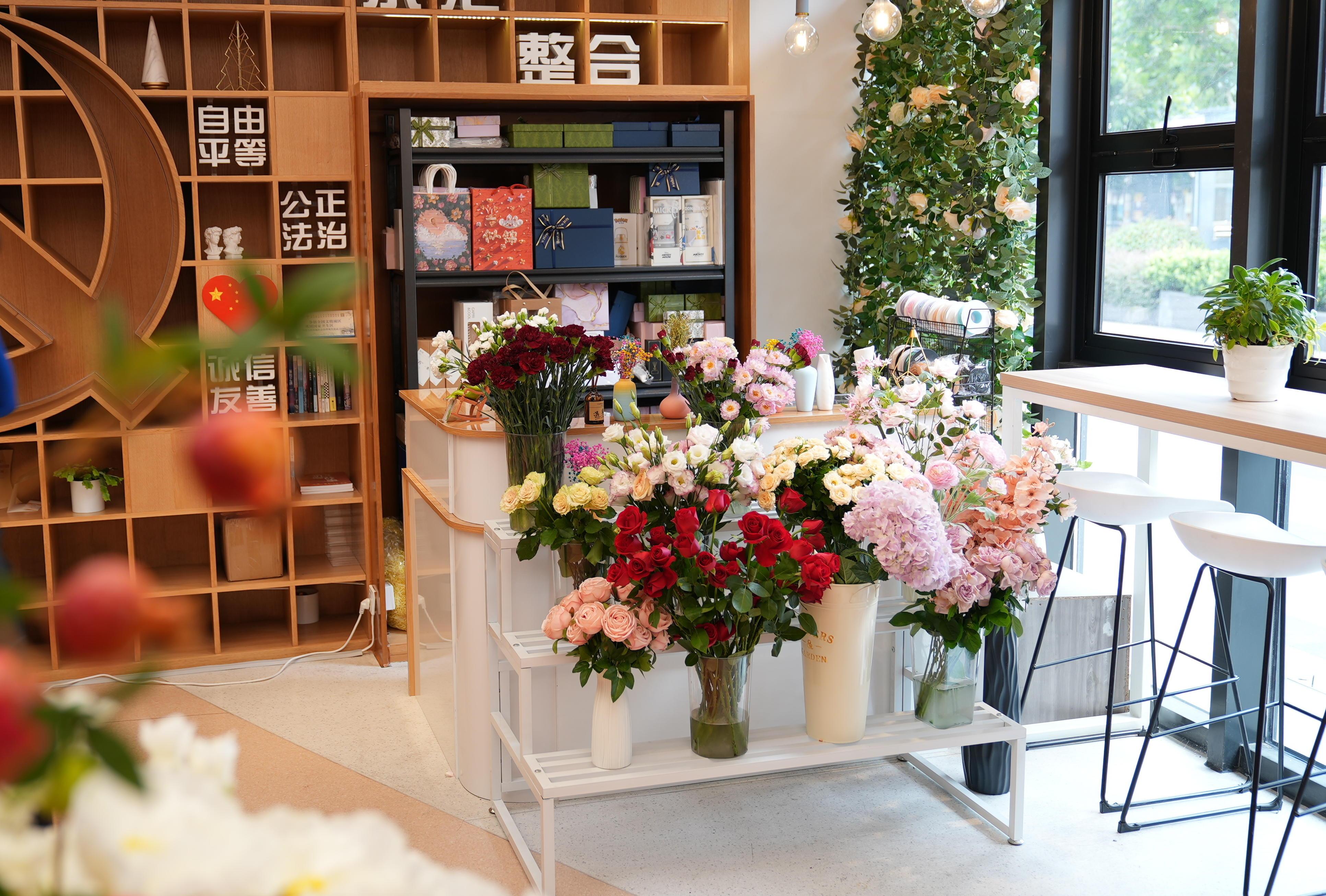 值得一提的是,花店内除了提供20余种鲜花外,还被纳入普陀区“15分钟社区生活圈”的范围,成为云南寻甸入沪牛肉、昭通苹果的社区提货点,此举进一步降低冷链配送到家的包装和物流成本。