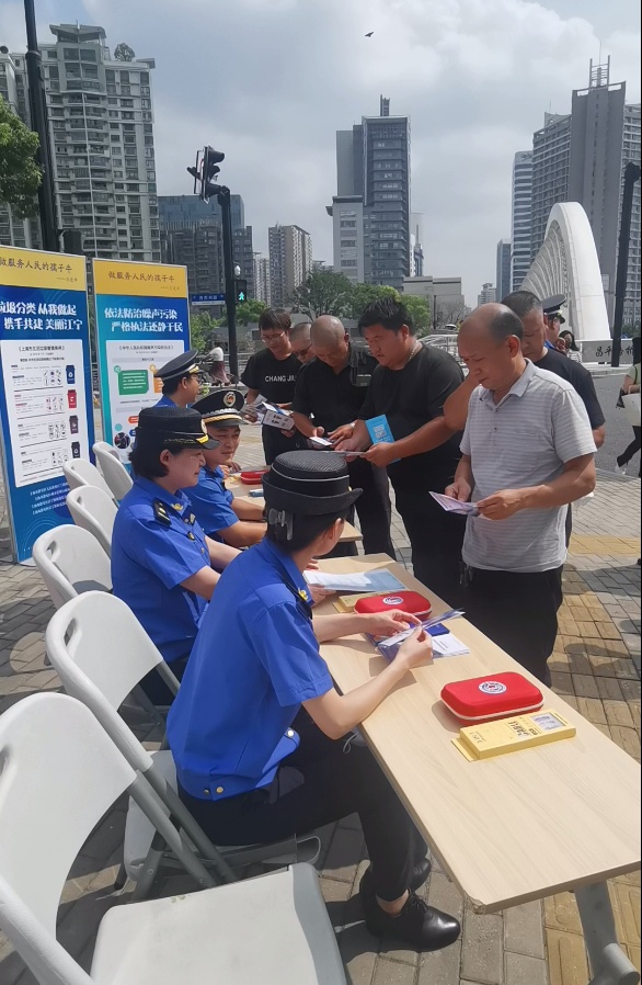 执法队员围绕与市民生活息息相关的《上海市黄浦江苏州河滨水公共空间条例》《上海市住房租赁条例》《上海市绿化条例》《上海市生活垃圾管理条例》等法律法规,通过宣传横幅、宣传展板、宣传手册等生动易懂的宣传方式,向来往于此的市民讲述上海“一江一河”的历史变迁,积极动员大家参与江河环境社会治理监督,现场普法讲解法律知识,并针对市民的提问进行解答。