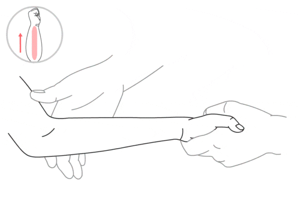 操作:操作者一手握住小儿手腕,用另一手拇指或食指、中指指面自小儿肘部推向手腕,可推100~300次。