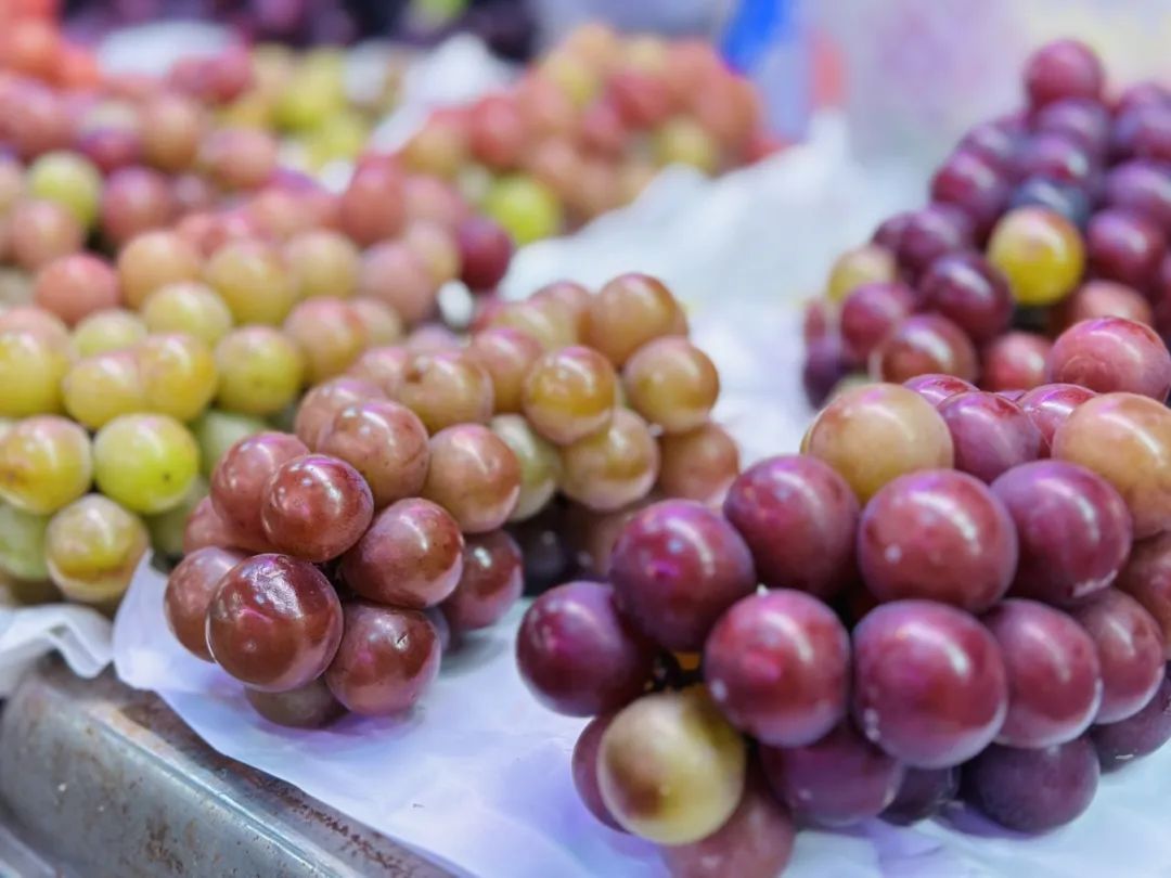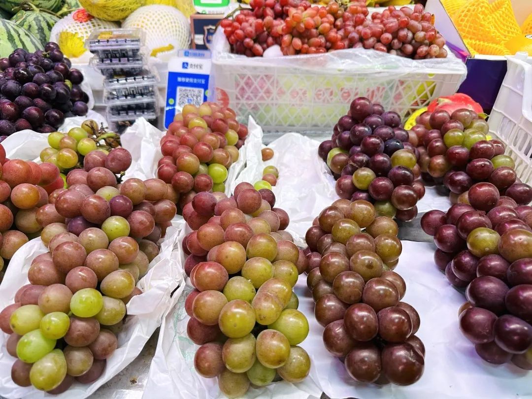 一旁,和马陆葡萄长得相似的玫瑰葡萄,也凭借其独特的玫瑰香气,俘获了一大批“吃货”的味蕾。水果摊摊主介绍说,当前几种葡萄都是新鲜上市,品质很好,而且价格稳定,平均在15元至18元一斤不等,和往年基本持平。