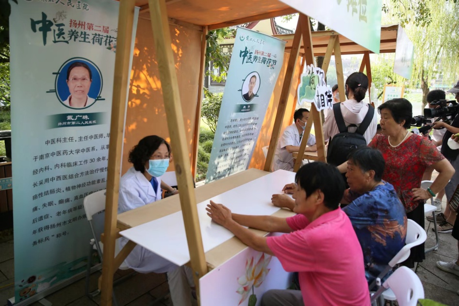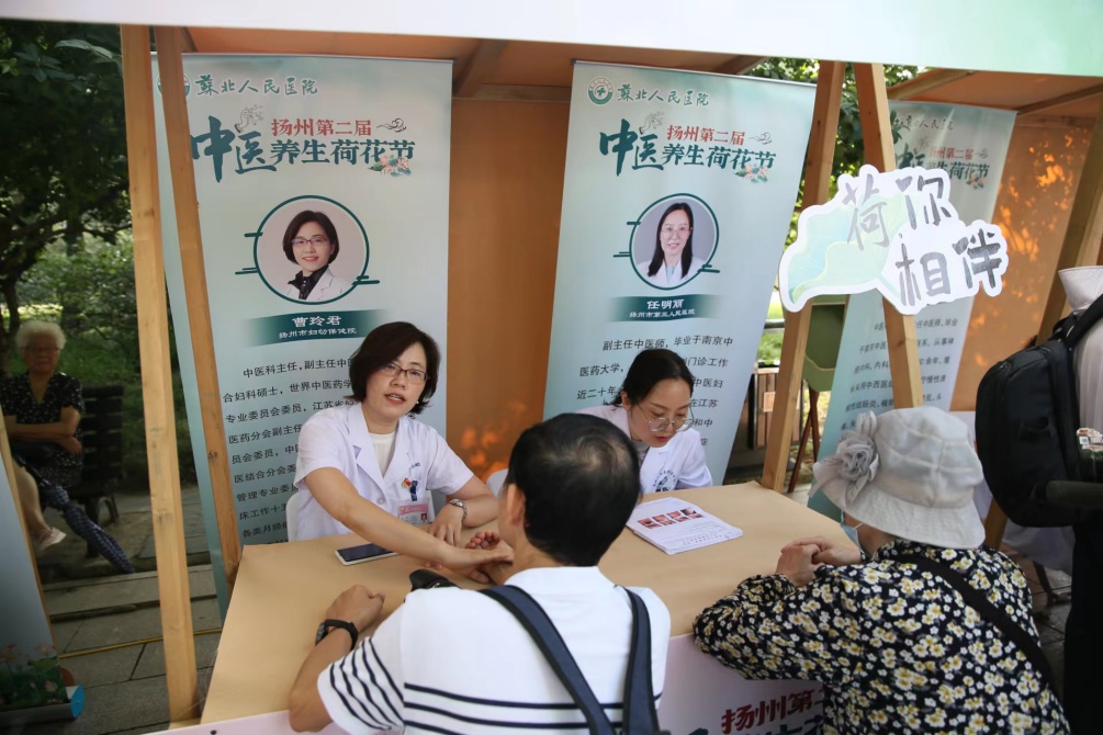 为大力弘扬中医药文化,助推医院高质量发展,促进中医药文化建设,自2021年起,苏北人民医院充分利用荷花池公园特色区位优势,共建中医药文化主题公园,并成立了扬州市青少年中医药文化科普教育基地,通过成果展示、现场义诊、中医养生荷花药膳、中医文化市集等丰富新颖的形式,跨界融合,实现了中医药文化的“破圈”落地。