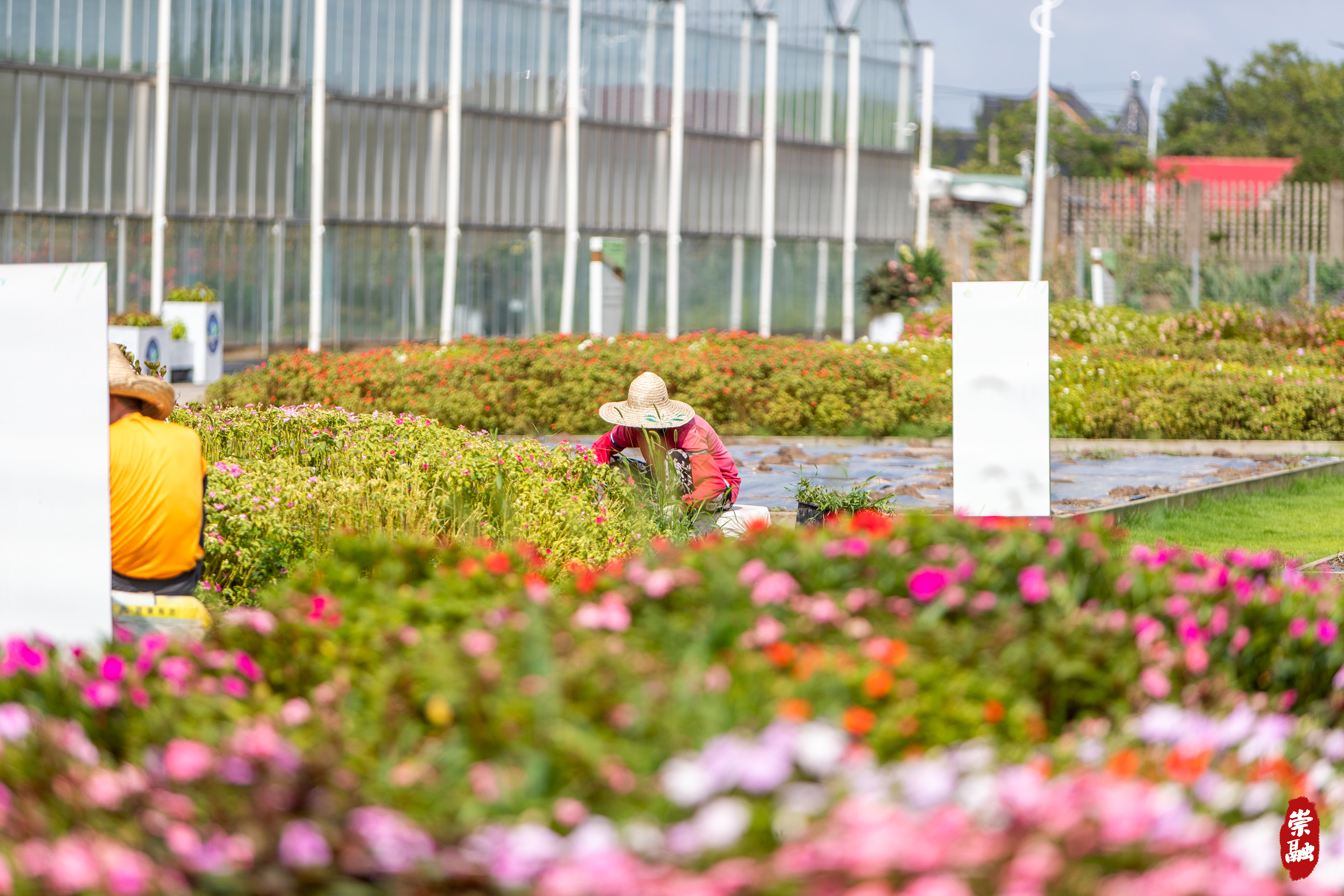 在室外花坛,工人们正翻整土地,去除杂草,为下阶段的花卉展览作准备。值得一提的是,这里招募的员工大多是港沿当地百姓。近年来,源怡公司从周边农村雇用了80余名工人,人均年增收3万元以上,实现农业增效、农民增收。