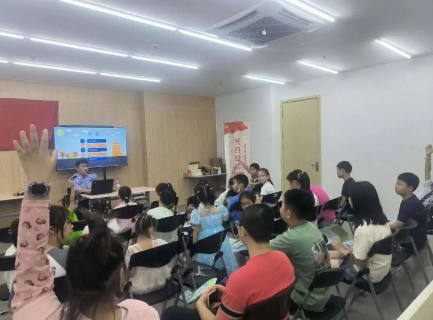 其实这并不是他们第一次与辖区共建单位联动了,这个暑假里,宝鸿居民区积极与社区“朋友圈”互动,通过巧妙借力的方式,为社区里的孩子们提供了一系列充满参与性、趣味性和实用性的暑期教育活动——派出所和交警支队的民警们可以给学员讲讲居家和出行安全;区公租房投资运营公司可以帮忙安排车辆组织学员在市内开展半日游;建设银行的执业者可以利用专业知识讲授理财技巧引导学员合理使用零花钱;街道司法所可以协调律师围绕垃圾分类、未成年人自我保护等主题给小朋友们作普法宣传……辖区共建单位的纷纷助力让这个来自社区的暑期课程充满吸引力,课程一经公布,3天时间内就有超130名居民加入到暑期活动微信群。
