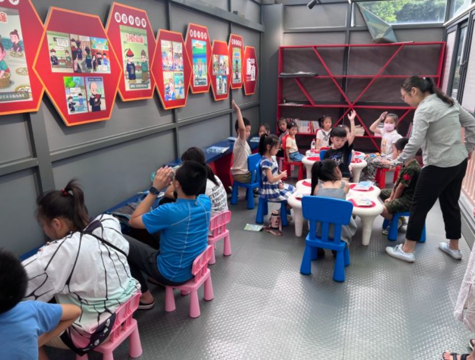 在上海金属玩具博物馆里,孩子们一边听工作人员讲解,一边好奇地这里瞅瞅那里看看,还体验了玩具制作环节。通过“学、乐、做、玩、看”,来感受玩具带来的魅力。而作为居民区,要组织这样一场走出来的半日社区活动其实还是需要花点心思的。“我们社区开展工作,有时候难免会有局限,这次我们辖区共建单位就为孩子们的出行提供了车辆接送,让社区里的孩子们可以在暑假走出社区,更好地实地感受我们江湾镇的历史文化。”江湾镇街道宝鸿居民区党总支第一书记宋琪告诉小虹。
