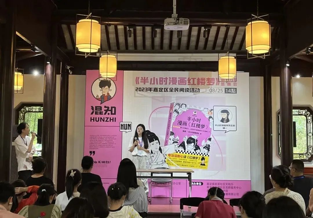 现场提问互动、漫画人物合影打卡、混知阅读展览……8月25日,作为“行走江南”阅读城市系列活动之一,“混知”主创团队走进古猗园清磬山房,携最新科普漫画《半小时漫画红楼梦》与读者见面。