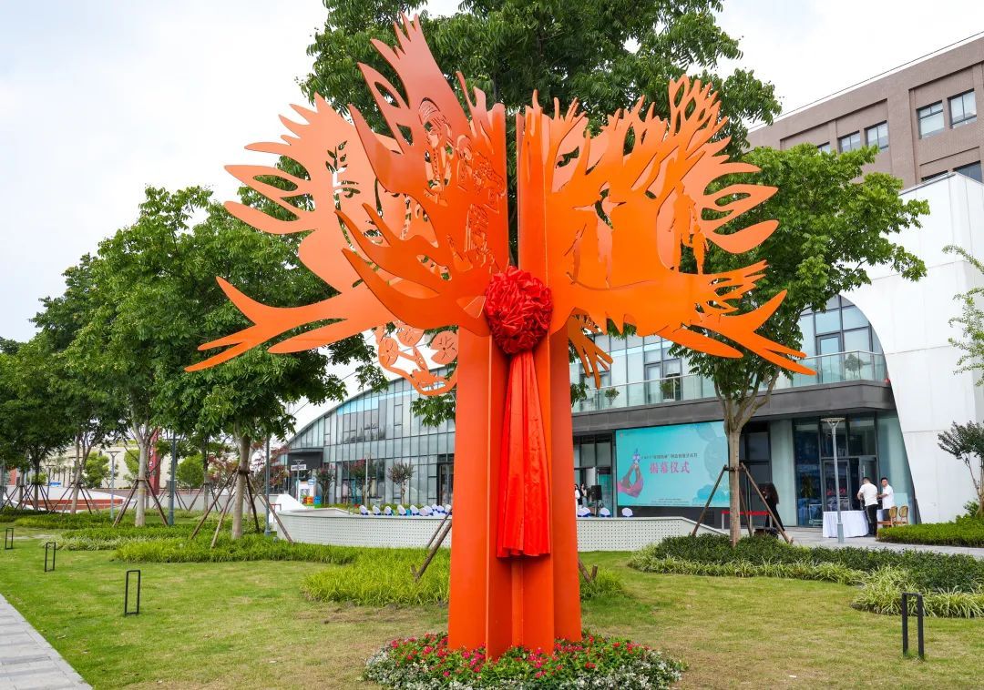 橘红色的树干巍然挺立,六片不同图案的树片比翼而起……8月25日,颛桥镇的非遗剪纸地标“光华之树”正式揭幕,2023“星河湾杯”创意剪纸艺术节也拉开了帷幕。 记者获悉,在接下来半个多月中,市民群众可近距离观赏到中国著名剪纸艺术家的作品,还能与他们面对面聆听作品背后的故事,感受剪纸的艺术之美与文化魅力。 跨界融合 唤醒剪纸艺术魅力 2006年,颛桥剪纸被上海市文化和旅游局列入《第二批上海市非物质文化遗产名录》,成为上海剪纸代表之一。近年来,颛桥镇以“非遗唤醒计划”为抓手,不断尝试“跨界融合”,创造性地创编了剪纸影戏《铜钟传奇》《奇袭沪闵路》《羊续悬鱼》《怪人张翼》,给广大市民带来不一样的文化体验。 此次,颛桥镇特别邀请本土艺术家与设计师团队合作,创作了以剪纸艺术为元素的独特金属装置——“光华之树”,根据当下群众的审美,把现代元素、创新理念融入剪纸艺术之中,带来不一样的文化内涵和艺术享受。