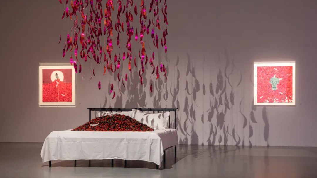 一万只洁白的鸽子飞进美术馆,一颗颗鲜红的樱桃静静躺在一张床上,等待他的主人——当代艺术家、诗人、童话作家周艺文先生的阐释。
